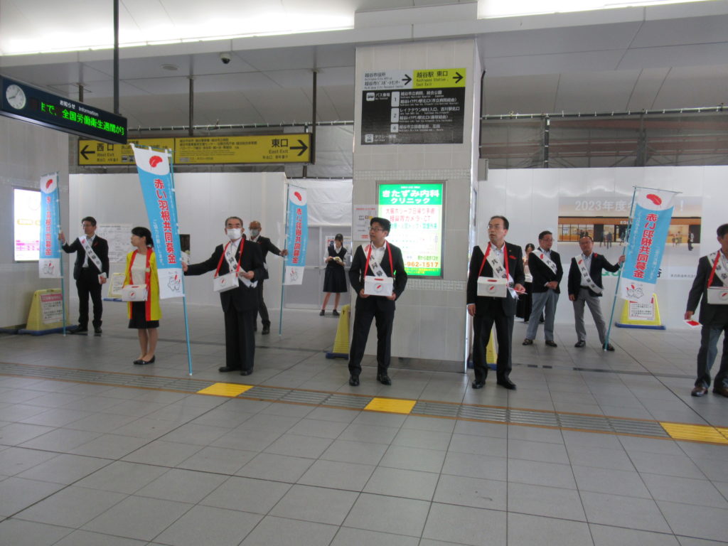 本日、越谷駅にて、赤い羽根共同募金街頭募金活動を