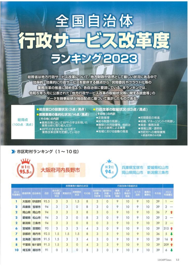 発表されている、全国自治体行政サービス改革度ランキング2023において