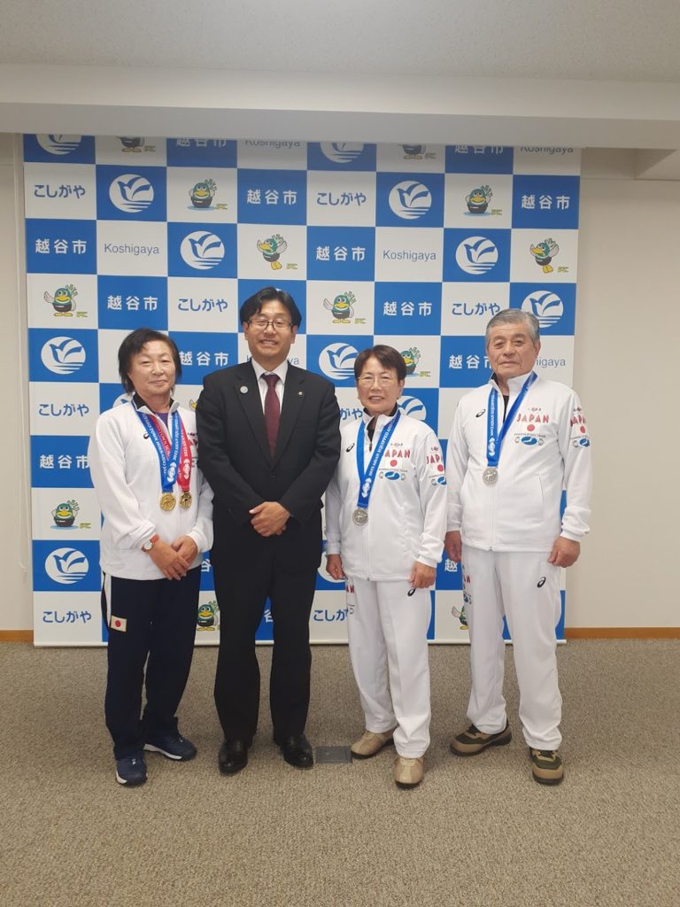 メダルを獲得された3名の選手が表敬訪問され