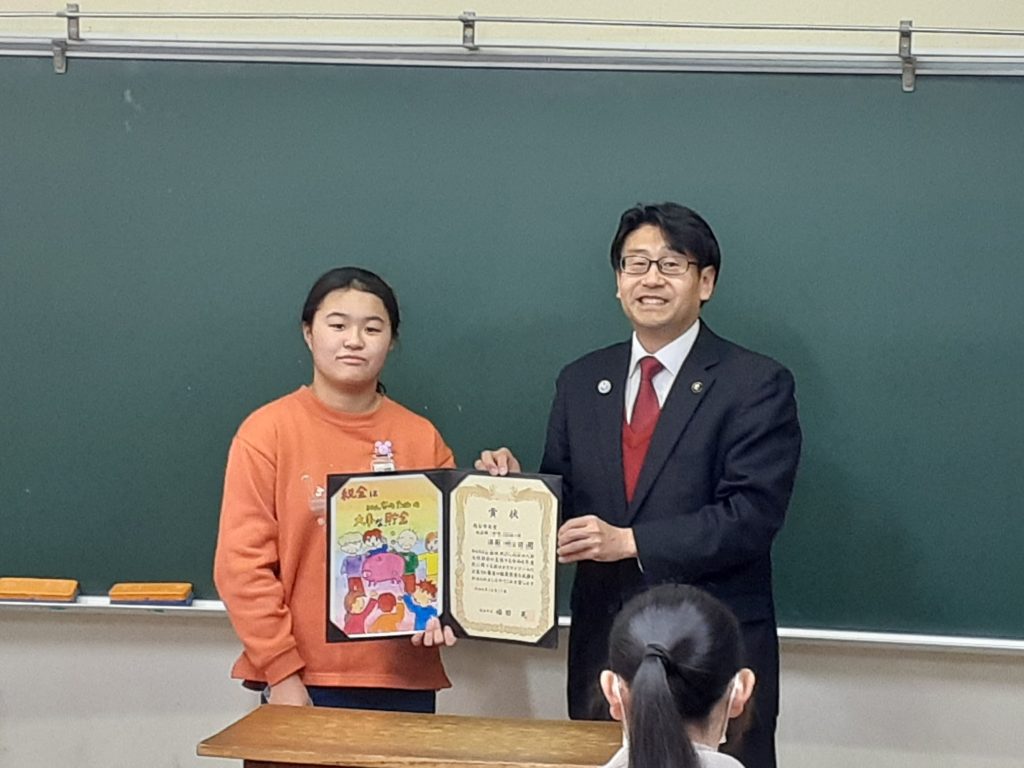 私からは、市長賞(1名)、教育長(1名)の表彰をさせて頂き