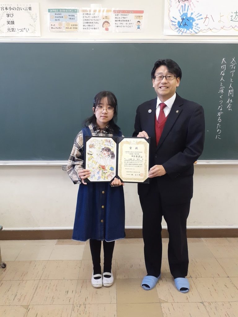 受賞者の皆さんが在籍している宮本小と明正小学校に