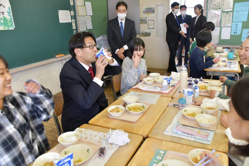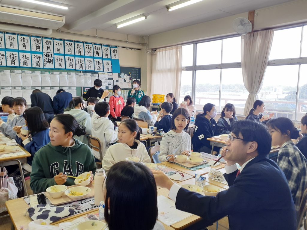 小学生の皆さんと食べる給食は一段と美味しく感じます。