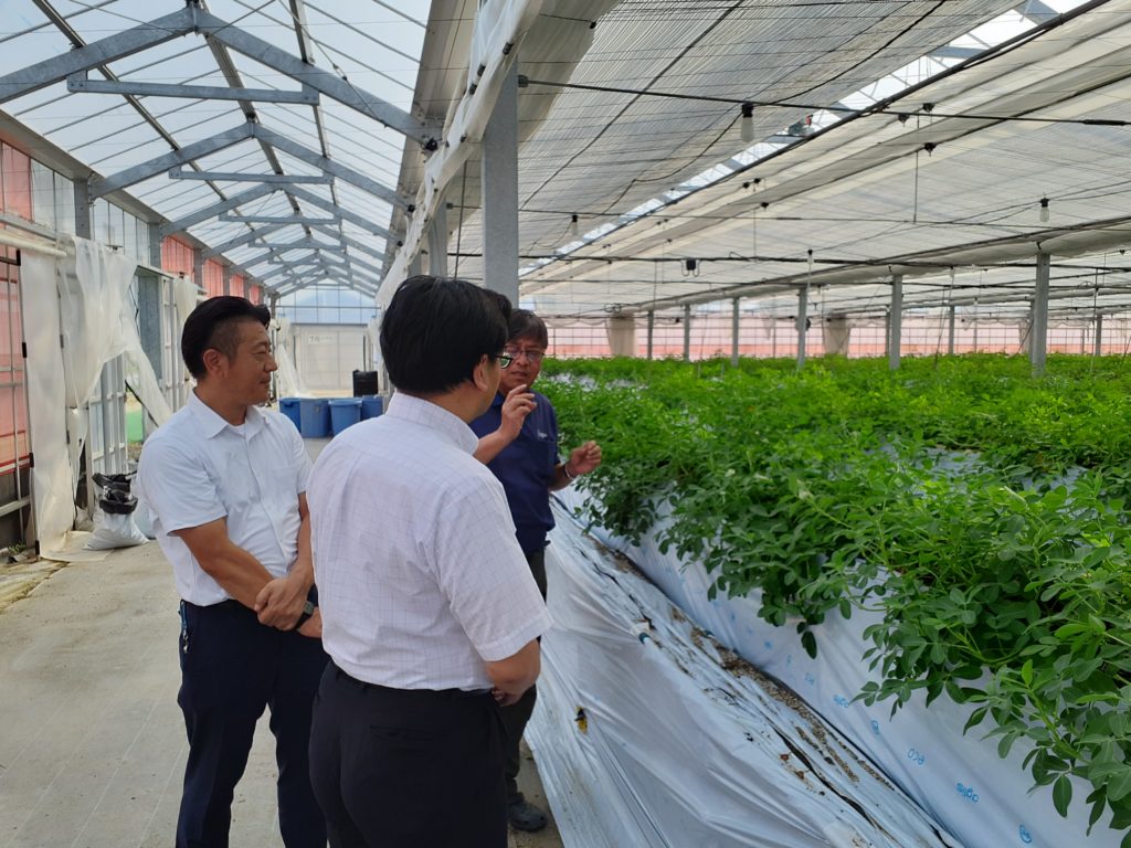 越谷いちごみらい園で落花生を栽培を視察