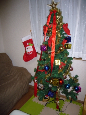 クリスマスツリーと靴下!息子はサンタさんに、この靴下にプレゼントをいれてもらいました!