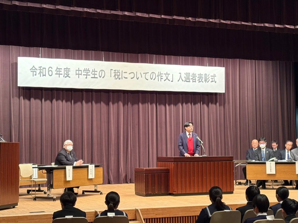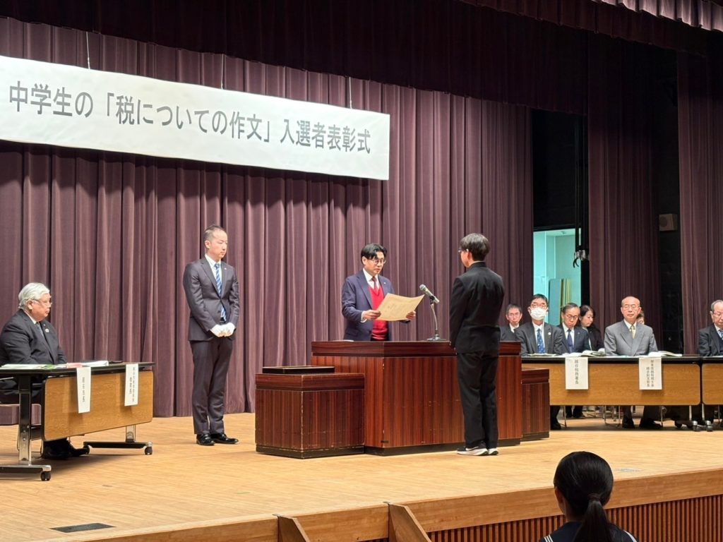 本日、令和6年度 中学生の税に関する作文入選者表彰式を