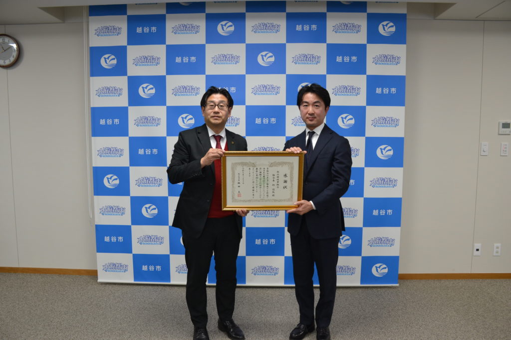 寄附金の受領及び感謝状贈呈式(越谷遊技業組合)