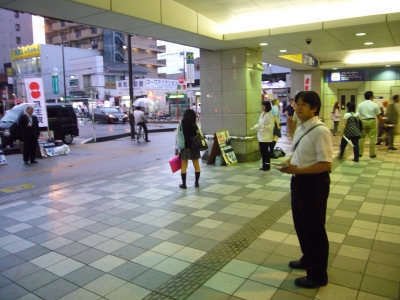 雨の中の駅頭でしたので、立ち止まって聞いてくれる人は