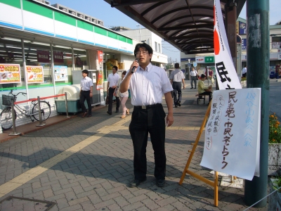 朝の駅頭を開始しました。