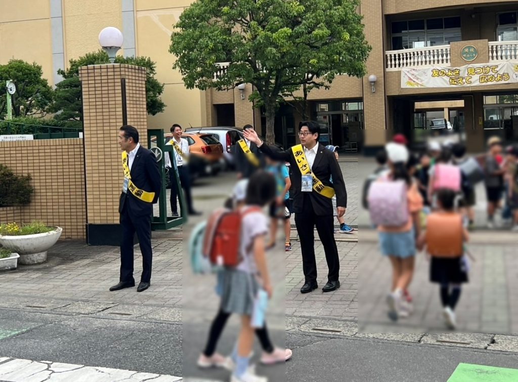 各小学校の生徒に朝の挨拶と同時に