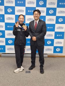 ムエタイ WMO世界スーパーフェザー級チャンピオン馬渡亮太選手 表敬訪問