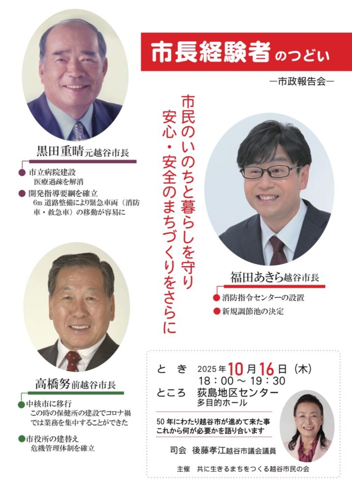 この度は、市長経験者の集いという趣旨も取り入れ