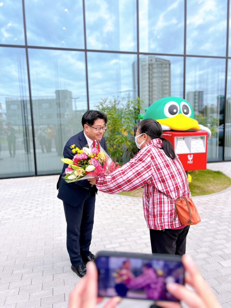 多くの支援者や職員にむかえられ、うれしさと同時に