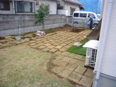 本日、庭の芝生化に取り組みました。