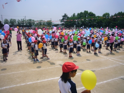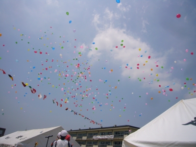 みんなの希望をのせて風船が大空高く舞い上がりました。