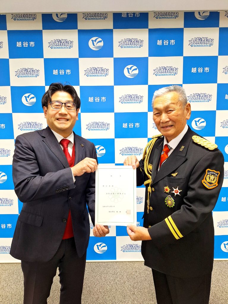 本日、越谷市消防団の野口且由新団長の