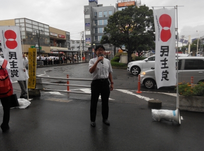 (小雨の中での駅頭です)