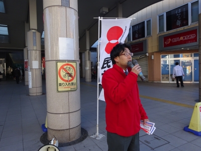 本日は会派ではなく、民主党の駅頭です。