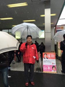 風邪が完全に治る前に、昨日、雪の中で駅頭を結構したことが