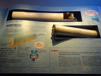 (低圧逆浸透装置:海水を膜に通して淡水を取り出します)
