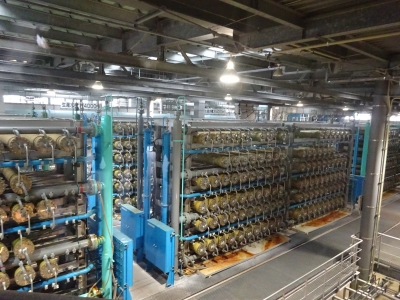 (高圧逆浸透装置:海水を膜に通して淡水を取り出します)