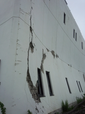 (津波を受けた壁です。まだそのままでした)