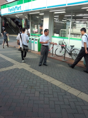 高橋市長も朝の時間を利用して、駅にてチラシ配りです。