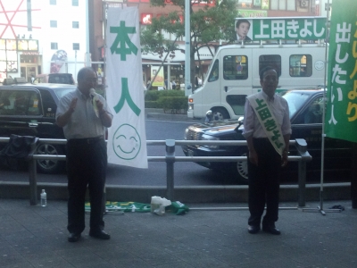 そして夜は、上田清司候補者が新越谷駅に来て、駅頭演説です。