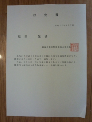 埼玉県知事選挙立会人の実施!そして上田埼玉県知事&大橋杉戸町議会の当選