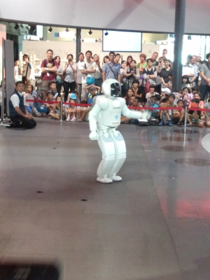 (日本科学未来館内でアシモを見ることができました!感激!)