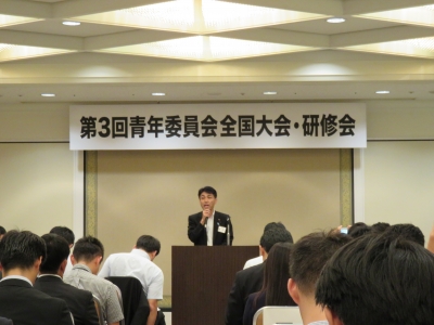 (挨拶をする黒岩宇洋青年委員長です)