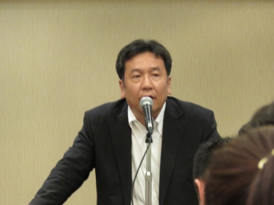 (来賓の挨拶をする枝野幸男幹事長です)