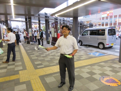 本日の夕方の街頭は越谷駅東口です。
