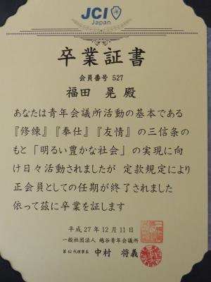 す。越谷青年会議所は卒業しますが、これからも末永いお付き合いよろしくお願いします。
