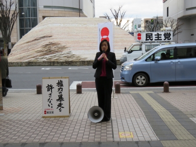 (演説する山川ゆりこ県議)