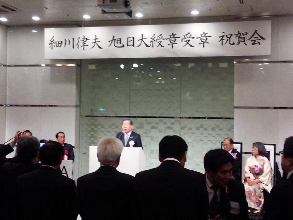 本日は、細川律夫元厚生労働大臣の旭日大綬章受賞祝賀会が