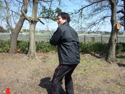 (ディスクをなげる大橋議員です)