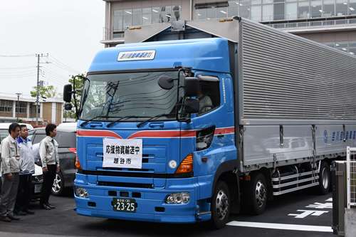 支援物資は、埼玉県トラック協会越谷支部の協力を得て、