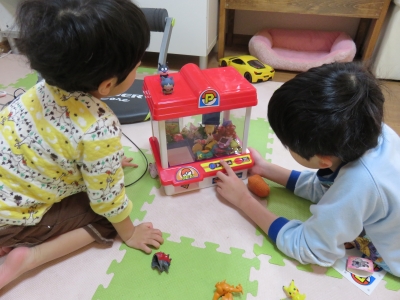 朝からお爺ちゃんサンタに買ってもらったゲームで遊ぶ息子たち