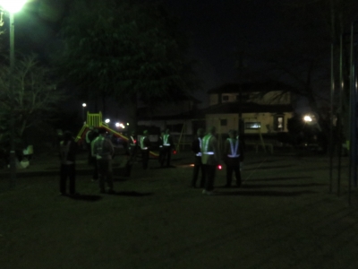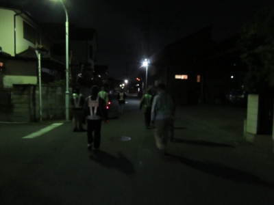 地域のみなさんと夜の自治会を「火の用心」とさけびながら