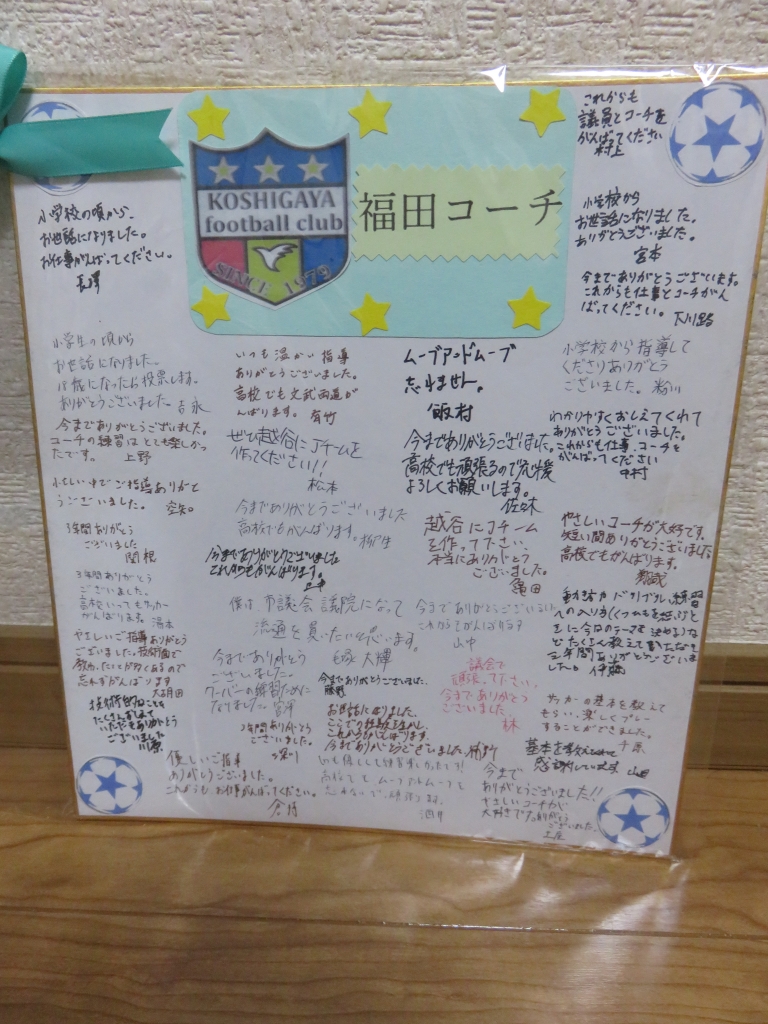 本日は、越谷FCジュニアユース3年生の送別会です。