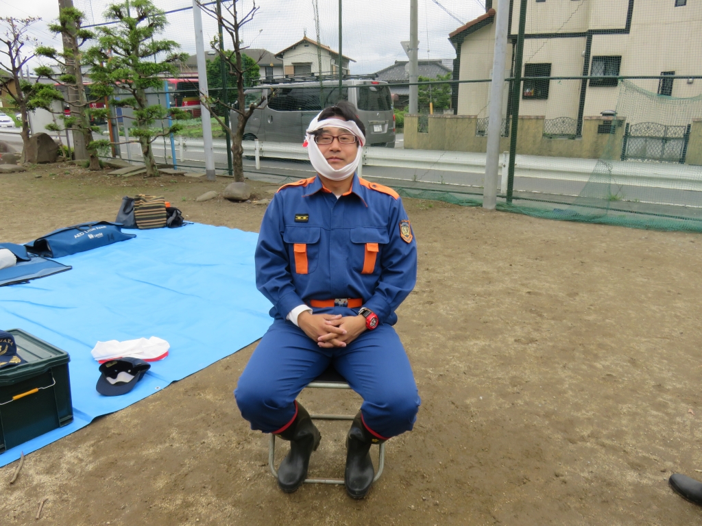 この度は女性団員から頭からの止血における応急手当の方法も
