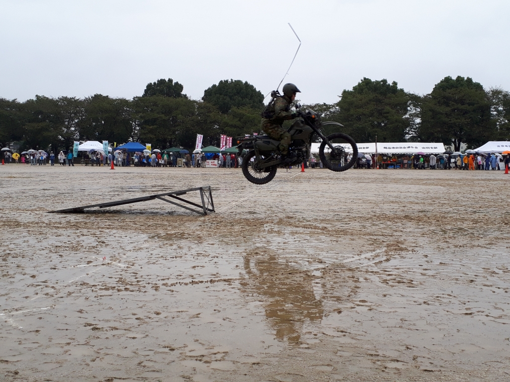 (自衛隊の方も参加です。バイクで情報収集をします)