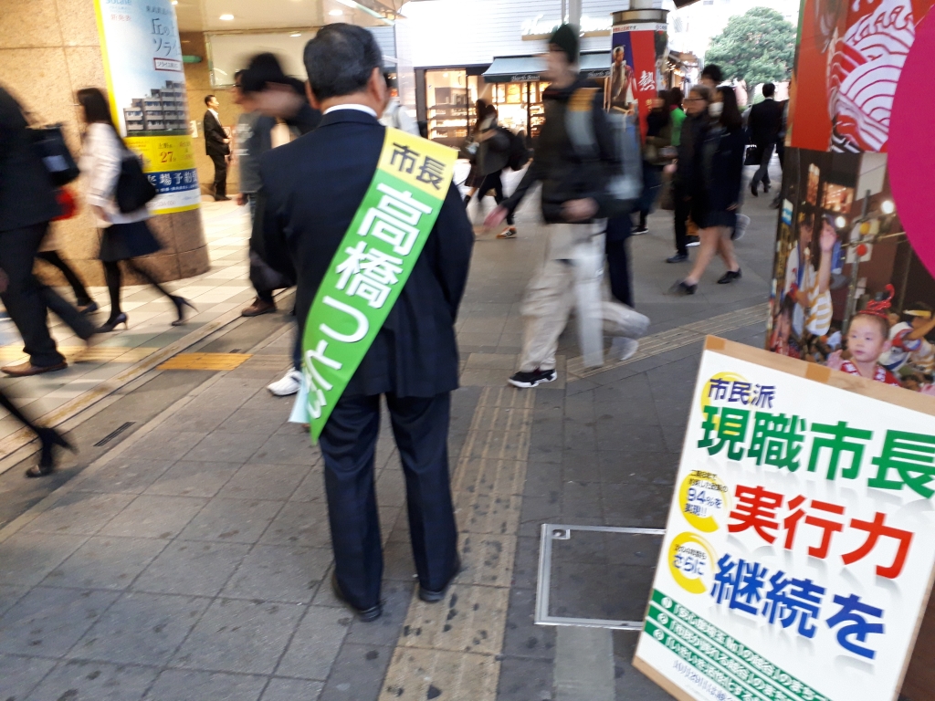 高橋つとむ市長も参加し、元気に駅頭です。