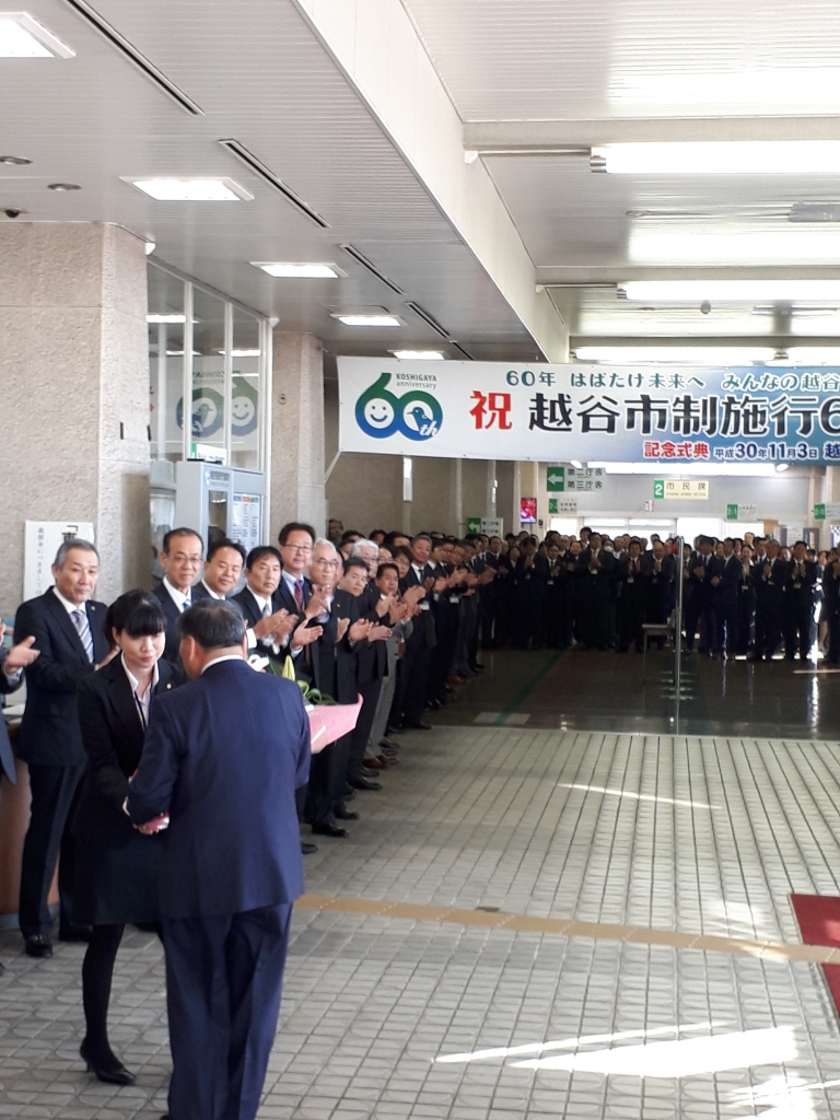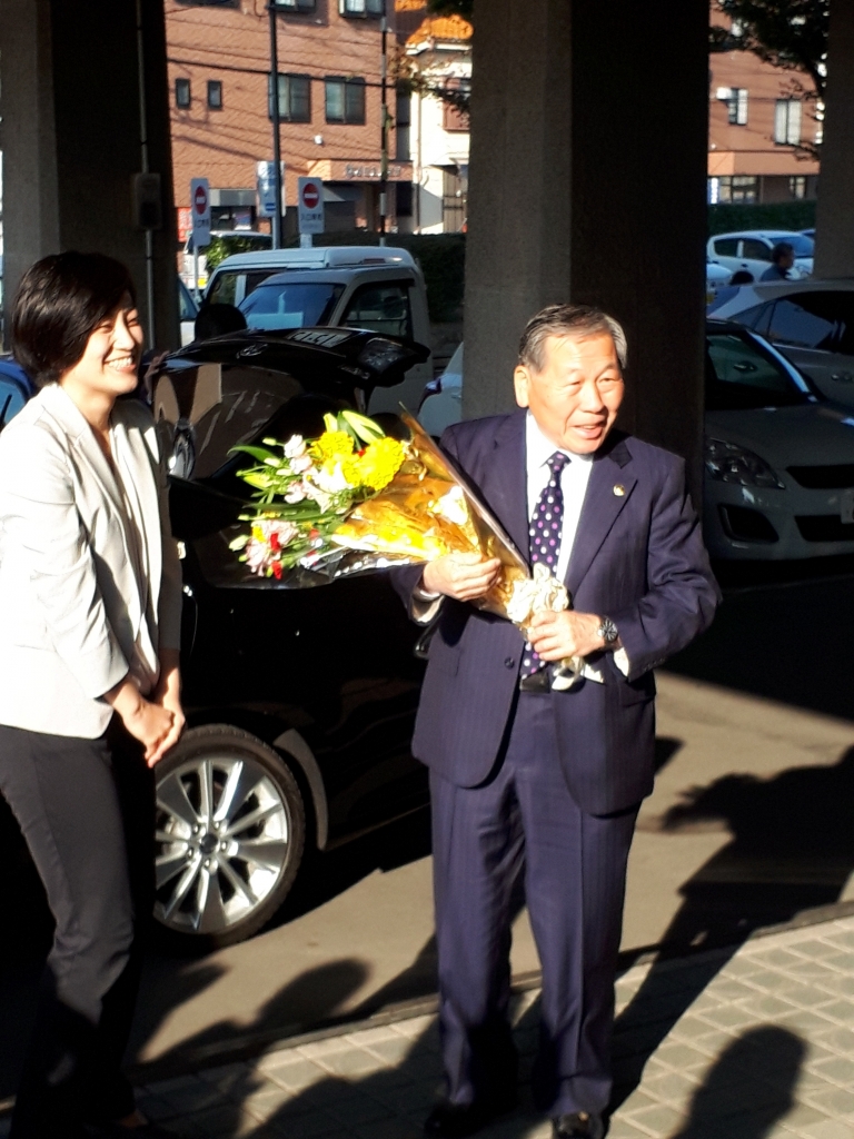 (行政職員の皆様に迎えられます)