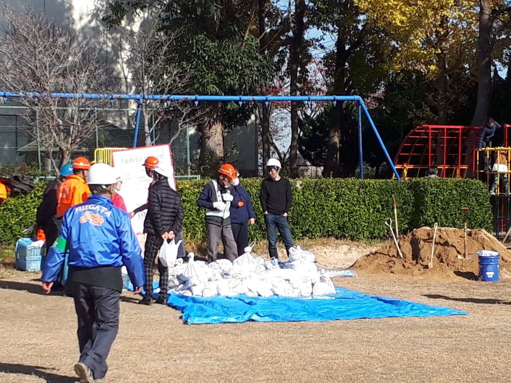 (土嚢作成訓練の様子です)