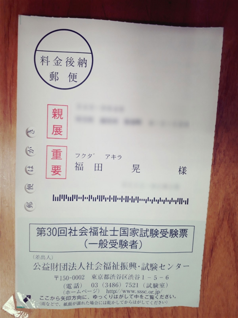 (受験票です:本日合格者発表に私の受験番号がありました)