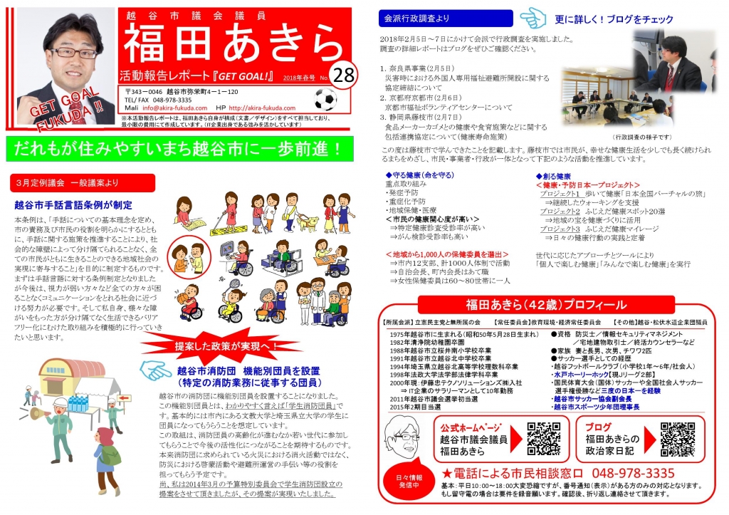 本日、活動報告レポートNo.28号の作成しました。
