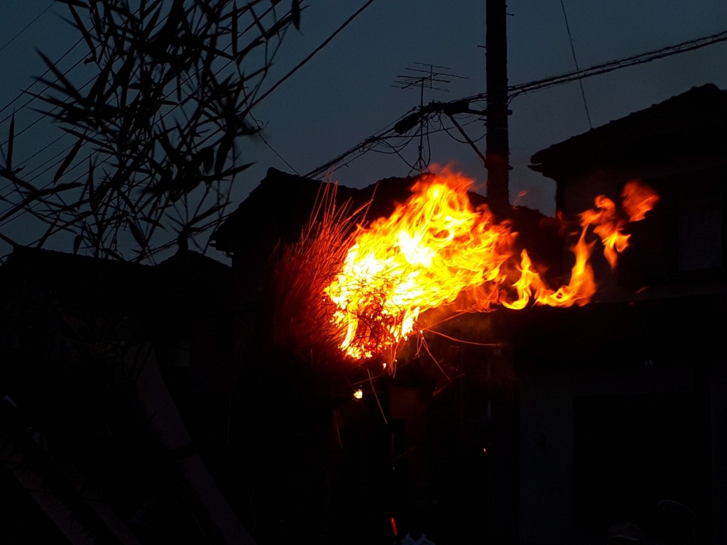 麦わらを束ねた長さ3メートルほどの大きなたいまつに火を灯し