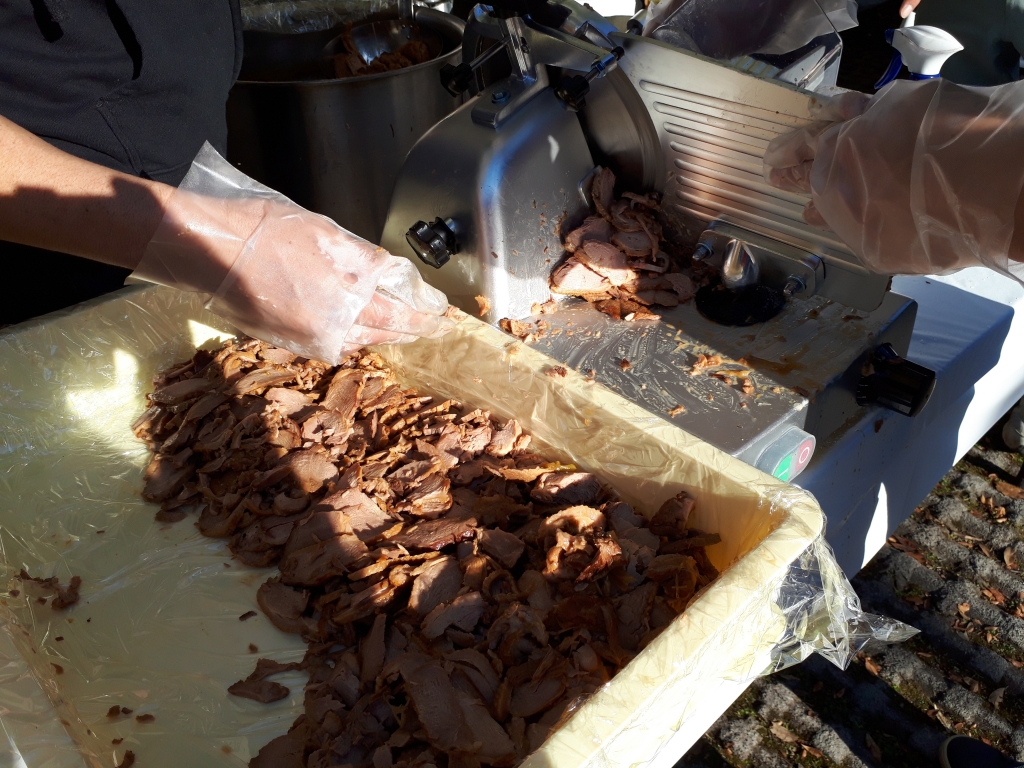 鴨ネギ鍋の販売です。目標であった杯数も売り切ったようです。