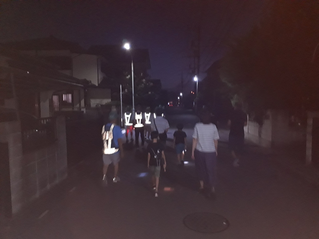 そして、夜は地域の安全パトロール隊の夜回りを子ども会と連携して